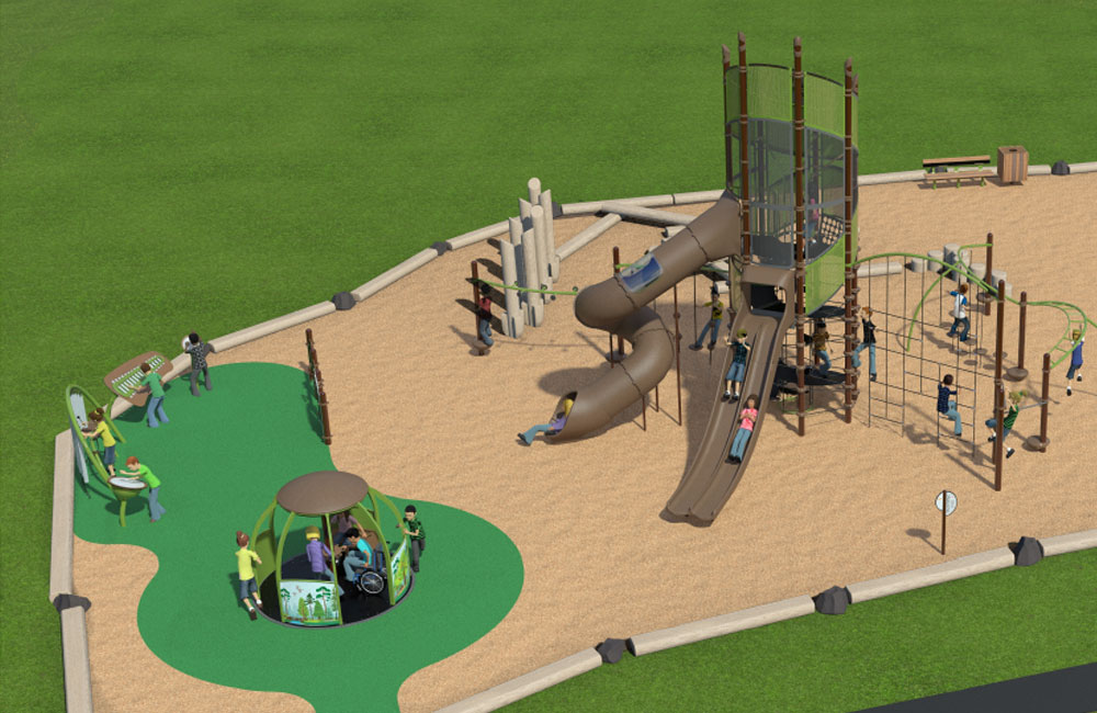 The City of Kamloops wanted to design and build a playground for McArthur Island due to the island's large usership area. They aimed to create a space that mimicked the natural environment with a softer aesthetic while ensuring inclusivity and accessibility for all ages.